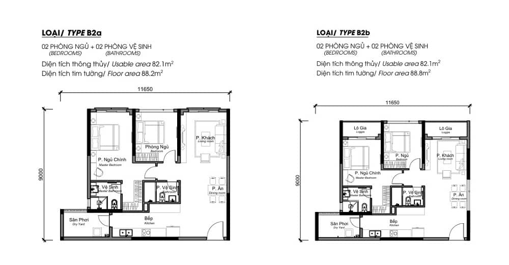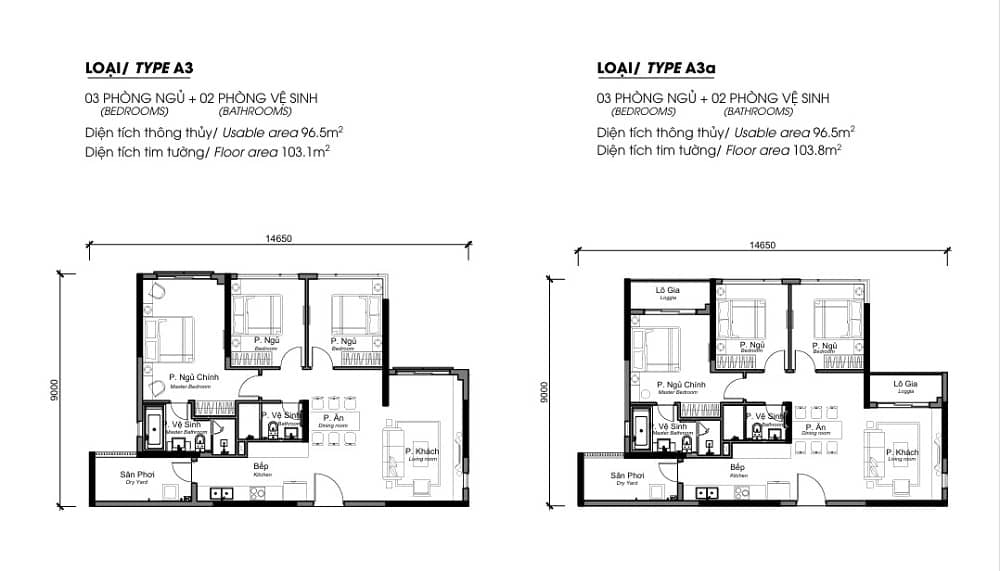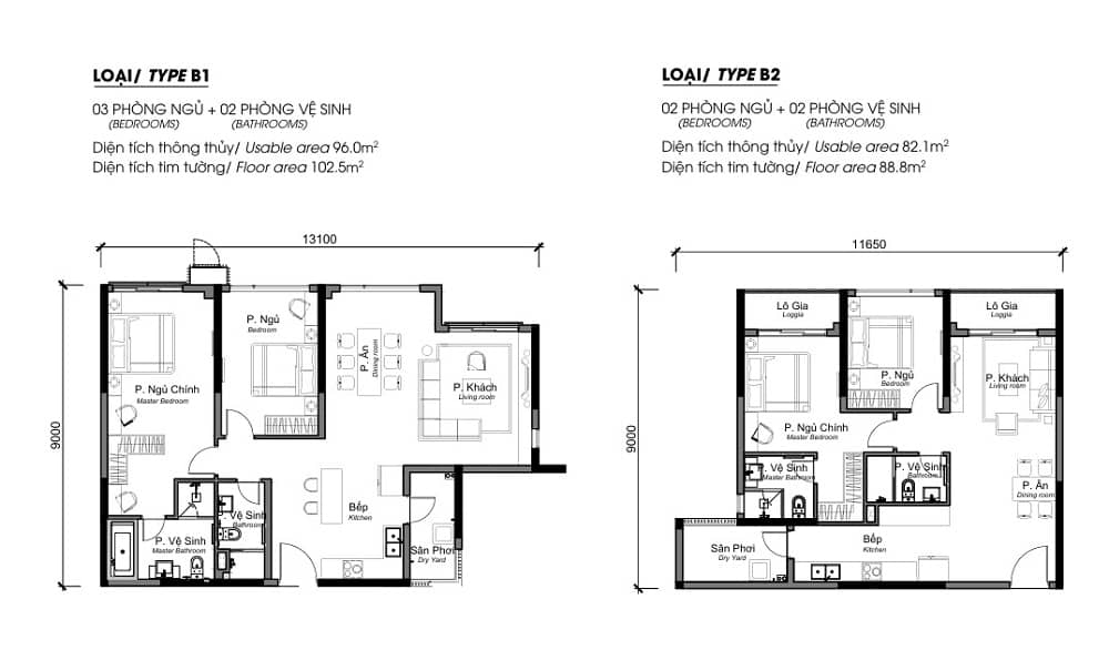 Loại hình căn hộ: 2PN, 3PN, Sky Villa